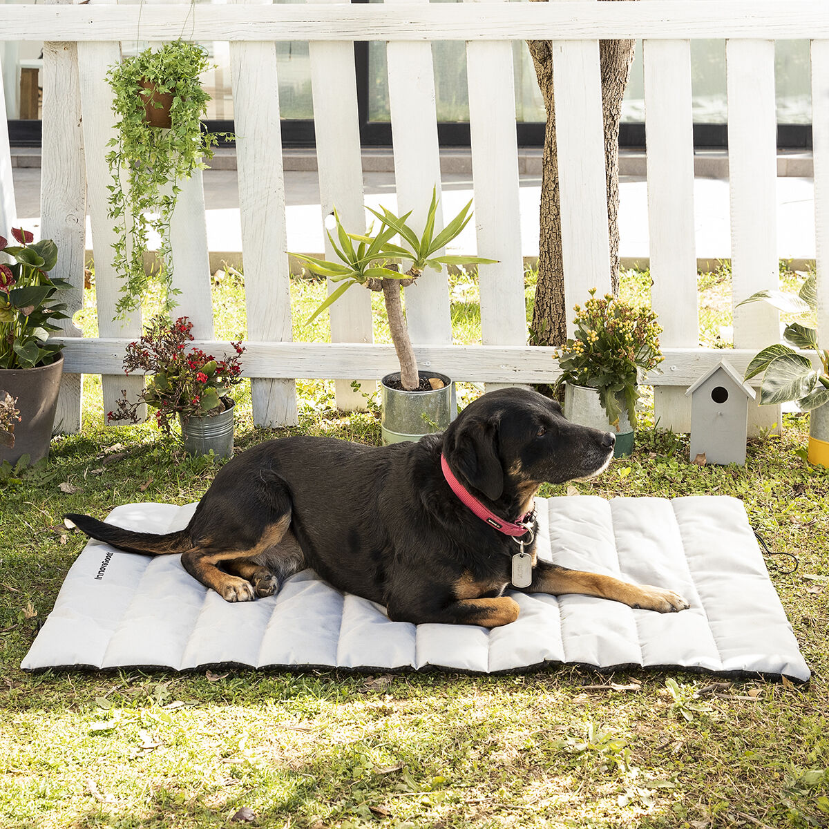 Tyylikäs, vedenpitävä ja kannettava lemmikin makuualusta, jota on erittäin miellyttävä käyttää ja jonka ansiosta eläimet voivat levätä ja rentoutua joka päivä täydellisessä mukavuudessa. Tämä alkuperäinen pehmustettu makuualusta on uudenaikainen, kevyt ja tukeva, ihanteellinen koirille ja muille lemmikkieläimille. Lisäksi sen kokoon taitettavan suunnittelun ansiosta makuualusta voidaan kääriä rullalle, mikä tekee helpoksi sen kuljettamisen ja säilytyksen. Makuualustan yläpinta on vedenkestävä ja likaa hylkivä. Liukumattomassa pohjassa olevat PVC-pisteet antavat lujan pidon. Voidaan käyttää sekä sisällä että ulkona. Makuualusta on myös helppo puhdistaa, koska se on konepestävä.